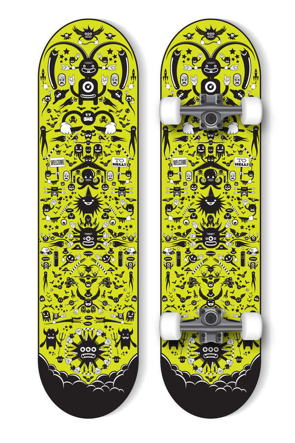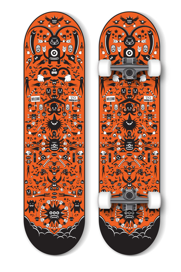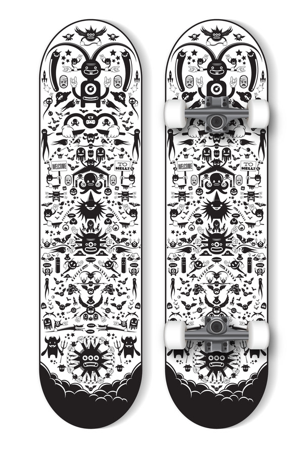 Skateboard design using my "Hell" characters.